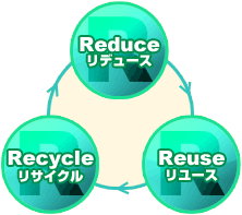 「3R」とは、ごみ減量・リサイクルに関連する3つの単語の頭文字をとったものです。